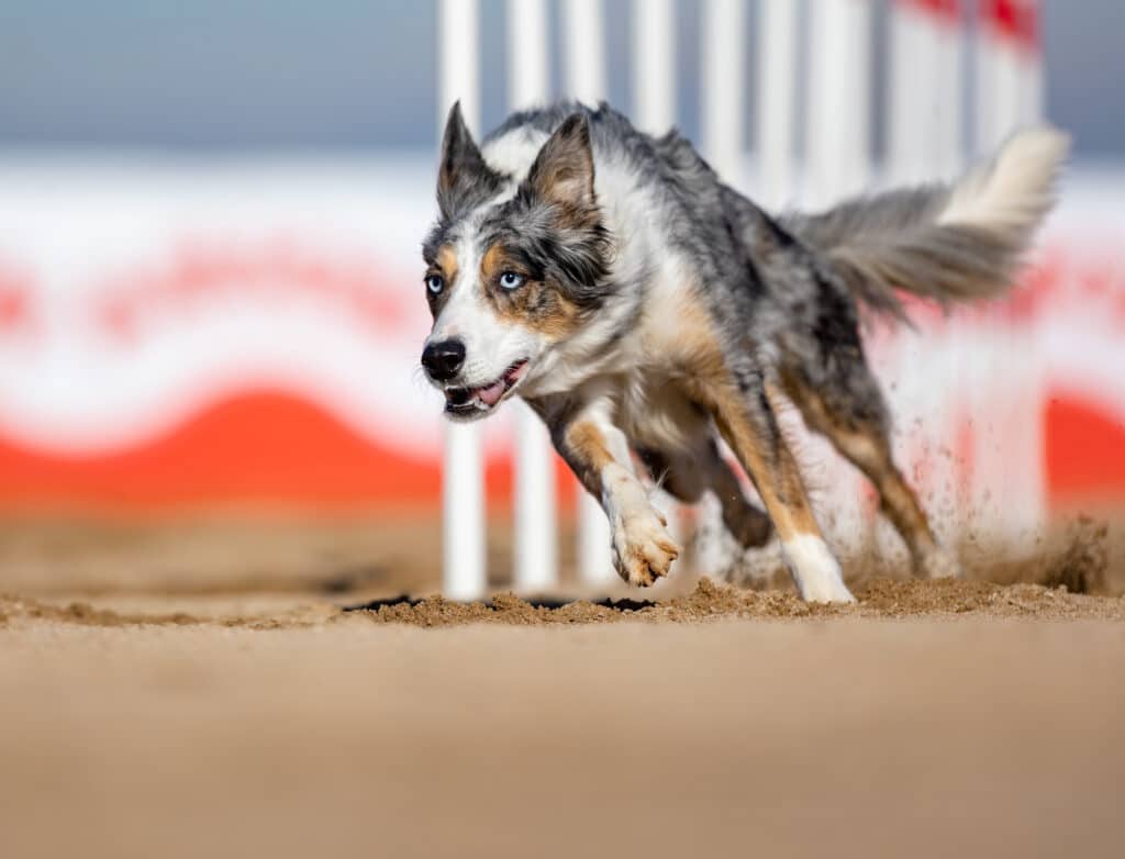 Noise, dogs, wind, movement — every variable was, and still is, a potential stressor. And above all, the agility field is a drug for her: 100% focus on obstacles. Tunnels, in particular, become her flock. Even today, she often chooses one tunnel on course, and that becomes the “sheep” she feels compelled to herd.